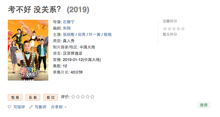 遗憾的是,即便有银河酷娱这样的的知名制作公司合作、国民级主持和当红明星加入、字节系产品的流量加持,打头阵的《头号任务》和《考不好没关系?》都没能脱颖而出成为爆款,两档综艺甚至至今在豆瓣都没有评分。