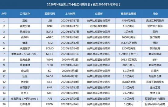 事实上,2020年中国企业赴美IPO的热度一点都不减,上半年达到了16家,仅比2019年同期减少一家,美股市场吸引力依旧。