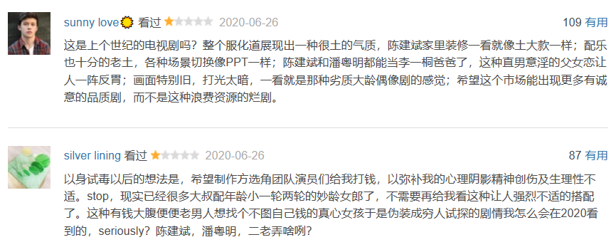 此时上演老少配,很难得到观众的真心回应,估计很长一段时间都是如此。