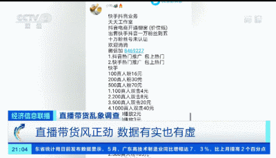 近日央视经济信息联播曝光直播乱象调查,让直播带货行业潜规则浮出水面。虚假销量、刷单刷粉丝、退货投诉风险、投入产出比不足等负面影响纷至沓来,空前繁荣的直播经济似乎开始遁入泡沫的阴影中。