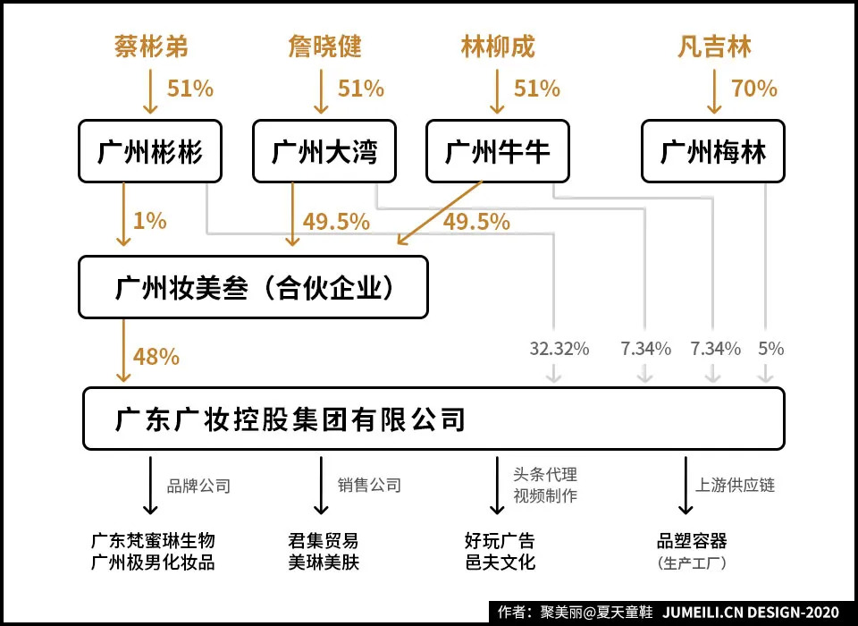 在广妆集团错综复杂的股权关系中,我们能看到贯穿其中的这几个关键思路: