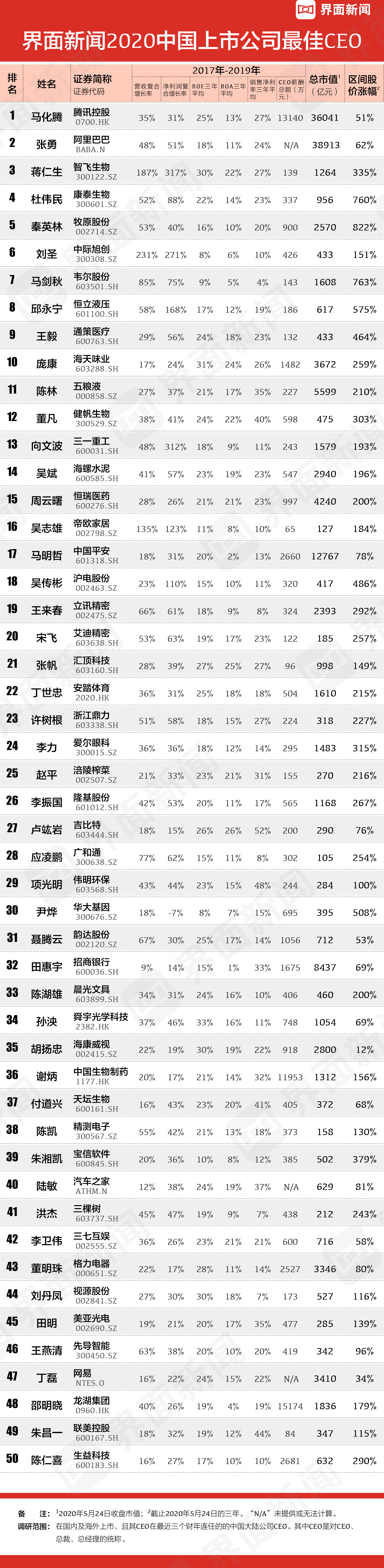 - 2020界面新闻A股上市公司CEO薪酬榜