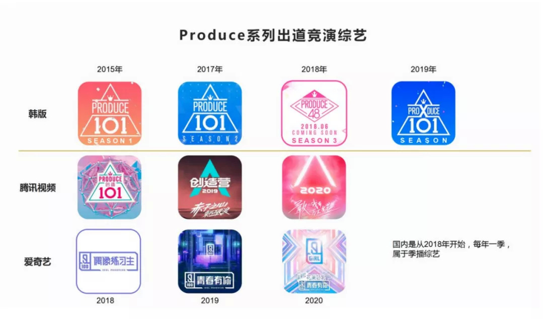 而现在是节目组向不同经纪公司进行成员招募,通过节目竞赛+明星导师培训+粉丝投票,最终获得高粉丝支持度的成员出道。这一个过程中,成员是否出道,选择权放在了粉丝大众手中,一方面这种偶像养成系模式是为后期成员出道起到了一个关注度保障,另一方面,粉丝自己选出来的偶像,支持度和粘性自然相对高一些。从现在流行文化,年轻粉丝更愿意养成偶像,这也是这类节目受关注的原因。