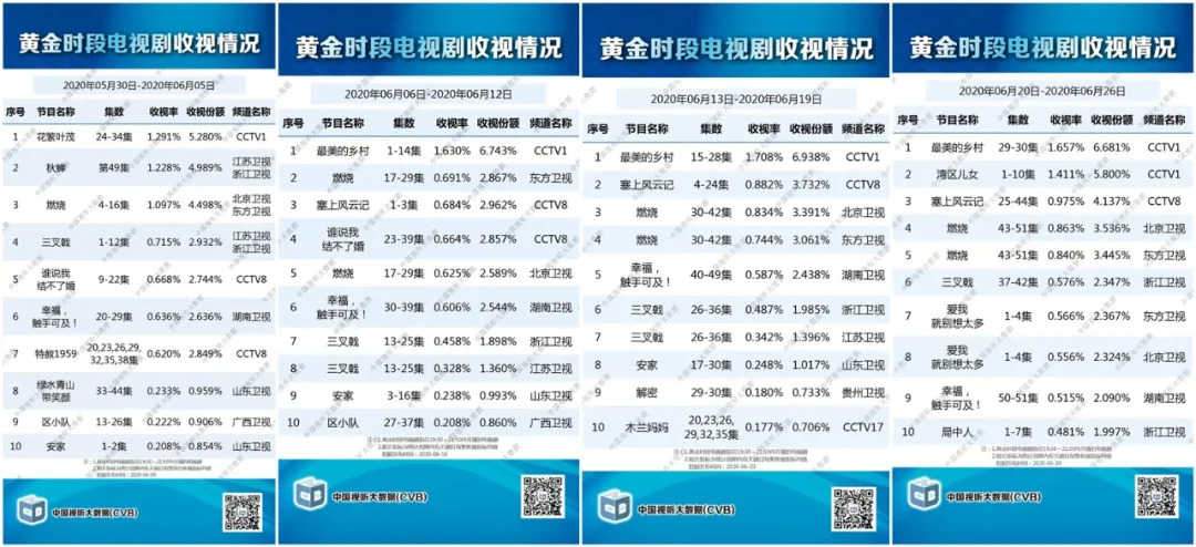 从收视来看,根据中国视听大数据发布的每周黄金时段电视剧收视情况,6月以来均是CCTV1的扶贫剧居于榜首。王迅主演的《花繁叶茂》播完后,接档的是郭靖宇团队打造的《最美的乡村》,收视份额不降反升。毫不意外,两部剧均是收视超高,但在网上动静不大,鲜少卷入媒体与群众的讨论当中。