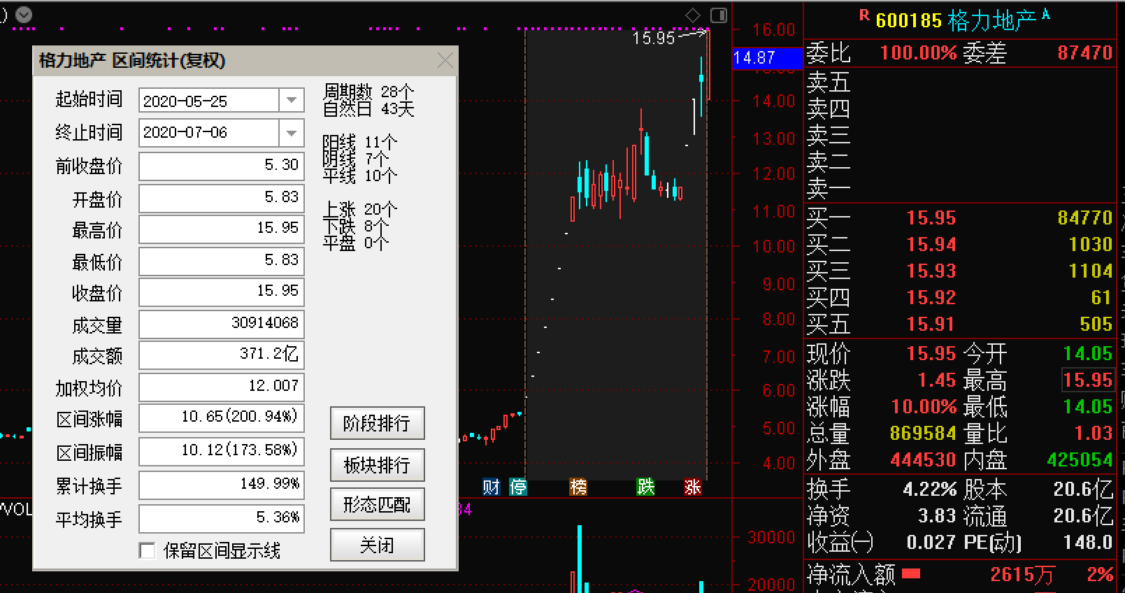随着格力地产(600185.SH)启动收购免税集团100%股权计划之后,格力地产股价迎来大涨。从5月25日至7月6日,格力地产共计涨幅200.94%,表现惊艳。7月6日,格力地产更是上摸15.95元的历史新高。