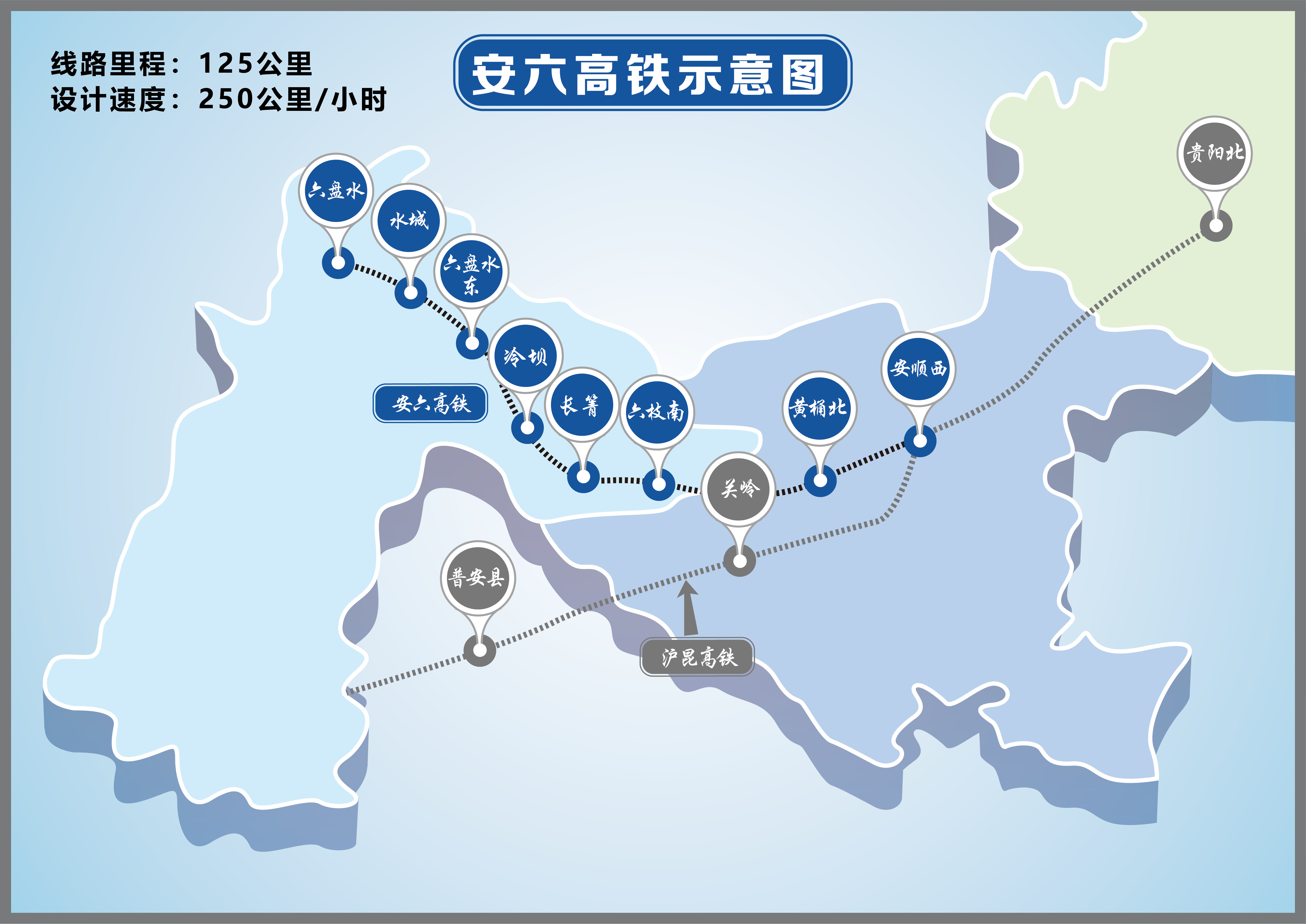 安六高铁是贵州省首条时速250公里的城际铁路,为沪昆高铁的延伸和补充,也是贵州省快速城际铁路网的重要组成部分,通过沪昆高铁连接起了贵阳、安顺、六盘水三个重要城市。安六高铁的开通运营,使六盘水市全面接入全国高铁网,加快融入贵阳1小时经济圈,对于合理引导沿线地区城镇空间布局,促进区域经济交流和旅游业发展,助力西部地区脱贫具有重要意义。