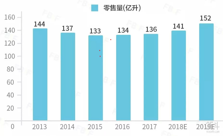 图:中国果汁零售市场规模走势(数据来源 中商产业研究院)