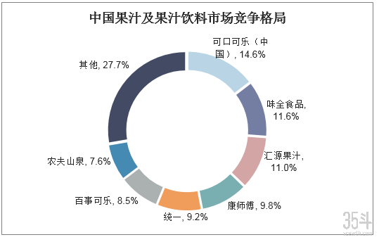 图为中国果汁及果汁饮料市场竞争格局 来自“36氪网”