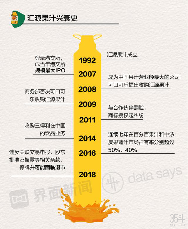 2020年3月2日原本是港交所拟定的汇源果汁(HK:01886)最终除牌日,但由于汇源集团提请复核,目前这家公司仍处于停牌状态。这个让民族自豪的果汁品牌一步步成为“果汁大王”,又走向退市边缘的故事,某种意义上正是国内果汁企业发展的一个缩影。