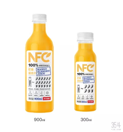 NFC果汁即非浓缩还原果汁(果汁含量100%),是将新鲜原果洗净压榨出果汁,经杀菌后直接灌装,完全保留了水果原有的新鲜风味,这种果汁保质期一般为一个月以内,并且必须低温(0-4度)冷藏。这区别于传统的浓缩高浓度果汁,后者的主要处理方式采用浓缩果汁加水还原后再加热杀菌处理,灌装则采用热灌的方式对包材及瓶口进行杀菌处理,使其保质期和货架期得以延长,通常情况下,这类果汁的保质期均为一年。