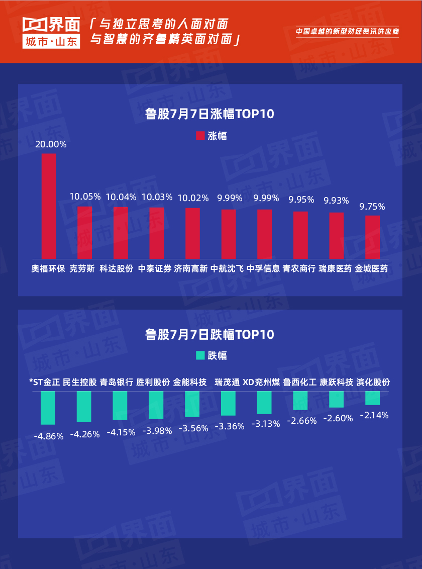 7月7日,山东省内沪深股票有115只个股上涨,86只下跌,12只与上一个交易日收盘价持平;