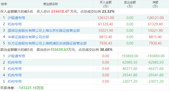 中国中免今日盘中大幅震荡,收跌4.29%,成交额约92亿元,日内振幅达16%。龙虎榜数据显示,北向资金、机构资金大举出货。北向资金买入12.61亿元同时卖出19.39亿元,净卖出额达6.77亿元。一个机构席位买入6.13亿元,四个机构席位卖出16.18亿元。