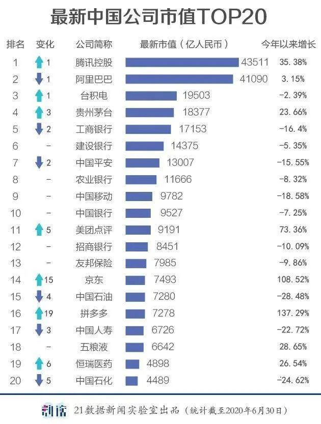 日前,一家研究机构发布了2020年上半年中国上市企业市值500强榜单。与2019年底相比,此次榜单发生了较大的变化,也体现了疫情这只黑天鹅对资本市场带来的冲击。
