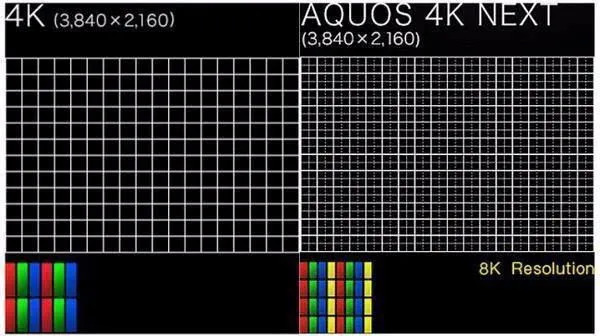 基于成本,有些厂商是用4K面板来替代。而早前夏普曾经研发出一种“4K Next”标准,即搭载4K面板,通过特殊的像素算法来实现8K画质。