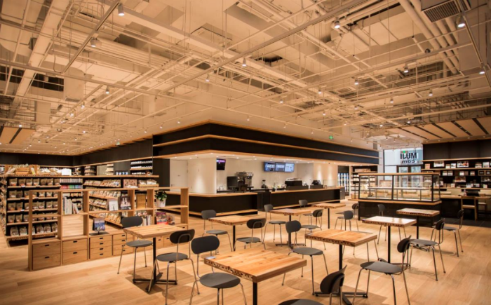 除了突出便利店提供必需商品和方便顾客选货的开放式货架陈列之外,MUJIcom同时还打造了餐饮空间,以及阅读休息的沙龙空间。