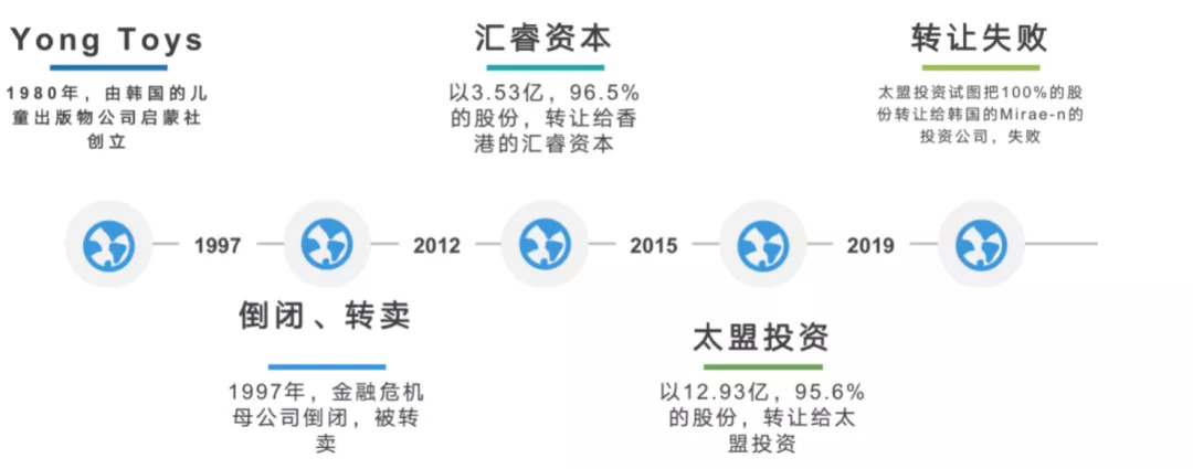 Young Toys的转卖命运并没有在此终结,2015年再一次被转让给PAG(Pacific Alliance Group,太盟投资)95.6%的股份约合人民币12.93亿元(2200亿韩元)。而从去年开始,PAG又打算将Young Toys转卖出去,接洽了韩国的Mirae-n子公司Nvestor投资,因为新冠疫情的蔓延,转让失败。