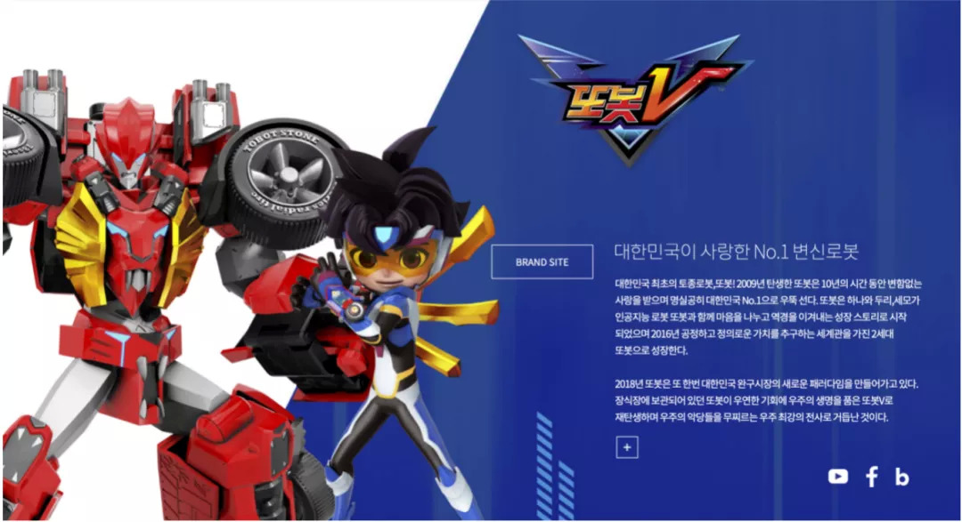 2009年,韩国本土的第一款变形汽车机器人Tobot诞生,在2012年为Young Toys实现了3.18亿元(542亿韩元)的销售额,而在此之前的2008年,该公司的年销售额为8342.5万元。而这也促成了Young Toys出走韩国的2012年的那次转让。而到了2015年,Tobot的累积数量就已经达到了800万个。