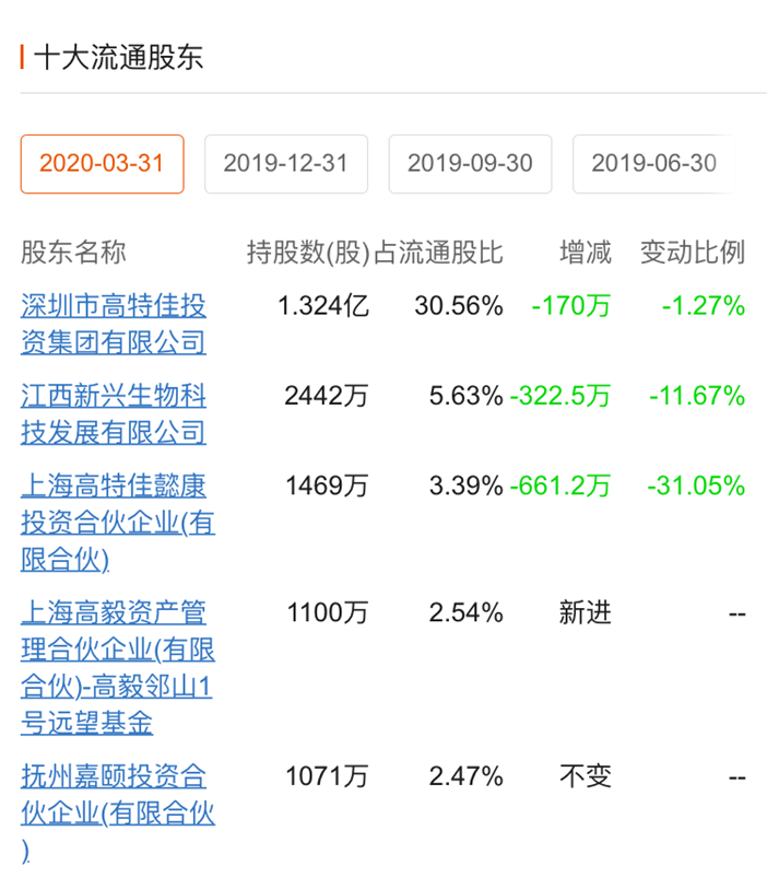 公开资料显示,上海高特佳懿康投资合伙企业(有限合伙)(以下简称懿康投资)与博雅生物的实际控制人高特佳集团为同一行动人。3月2日,博雅生物(300294.SZ)公告,懿康投资于2020年2月7日、2月10日及3月2日累计减持462.5122万股,减持比例1.0859%。按照当前博雅生物164亿(人民币,下同)市值计算,懿康投资成功套现超过1.6亿。