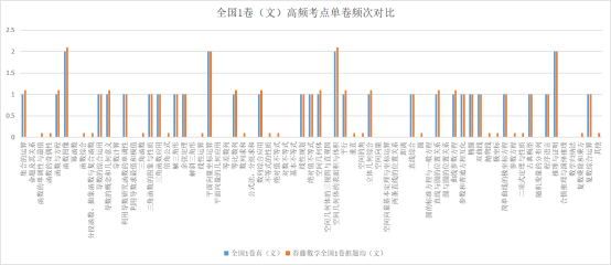 以下为“春藤数学”智能推题的高频知识点,与今年全国数学高考卷I、卷II、卷III真题匹配度及相关比对数据。
