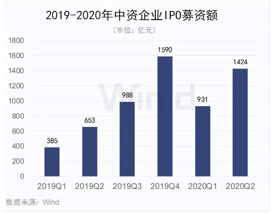 根据Wind数据,2020年上半年,中资企业IPO上市174起,其中一季度83起,二季度91起。而在去年同期,这两个数字分别是58起和60起。