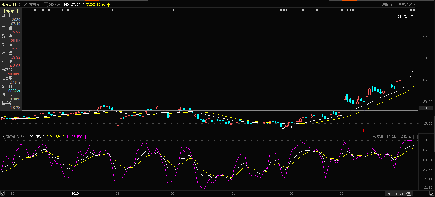 7月10日,特种橡胶助剂龙头彤程新材(603650.SH)开盘即封上涨停,截至记者发稿,彤程新材涨停,报39.92元/股。