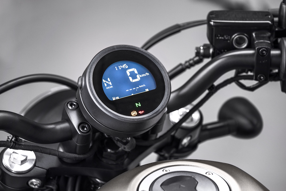 仪表方面,CM500采取复古圆形,直径100mm的小型LCD仪表。全液晶显示屏可显示挡位、油量和车速,提供更清晰的读数。
