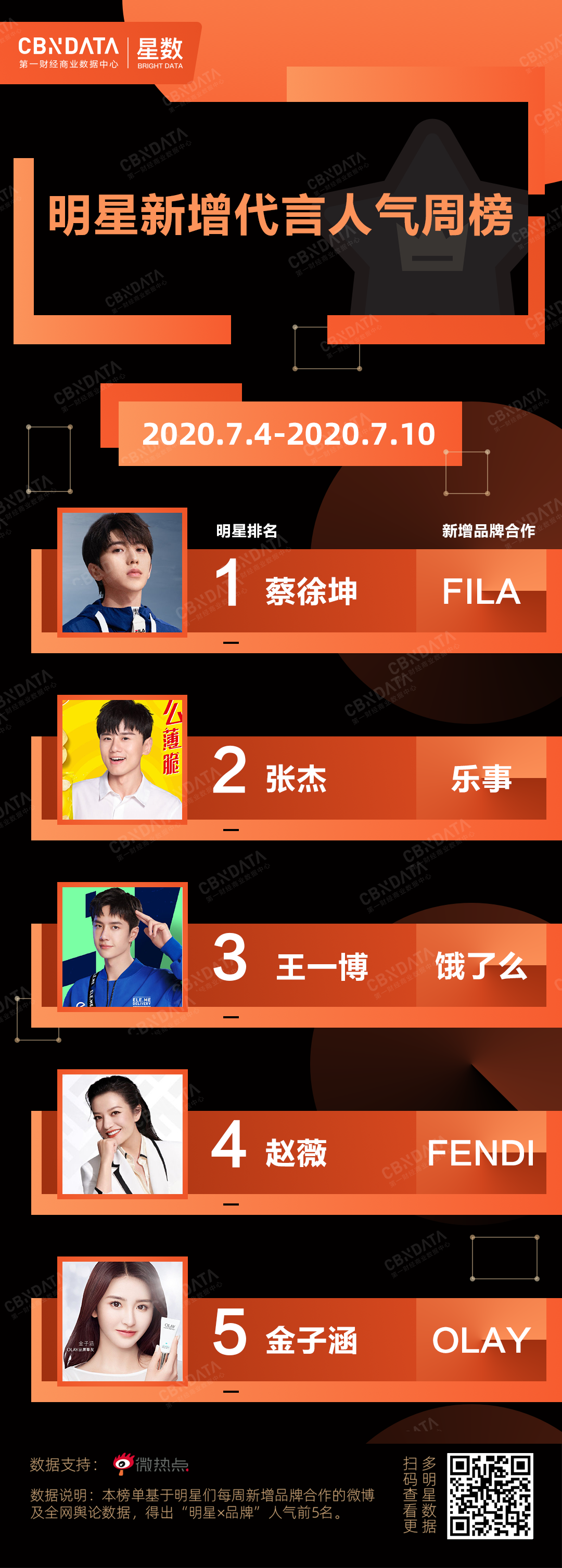CBNData星数全新发布“明星新增代言人气周榜”及“明星代言周报”,