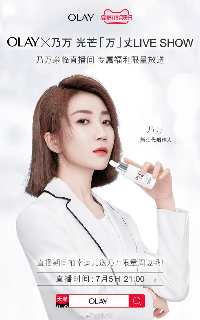 7月5日,OLAY宣布乃万成为品牌挚友。