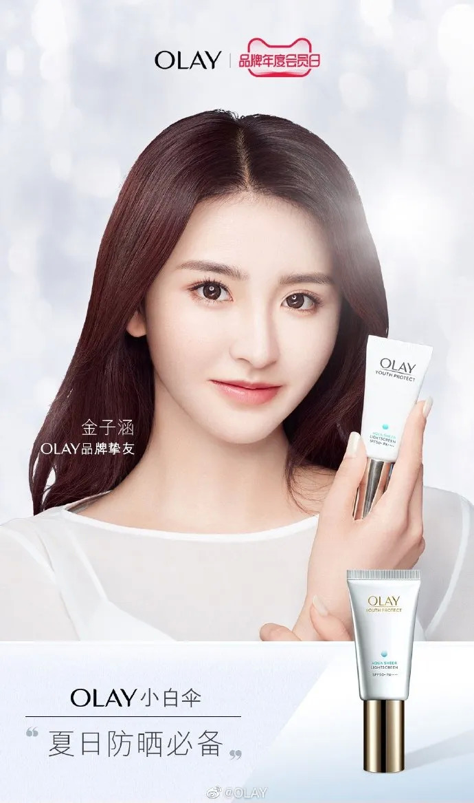 7月6日,OLAY宣布金子涵成为品牌挚友。