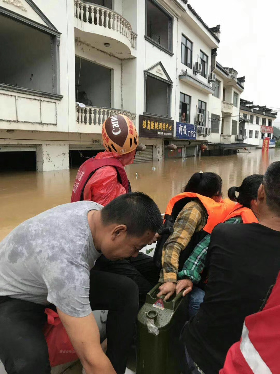 黄山市山越应急救援中心歙县分队队长胡歌生活在歙县40余年,从未见过如此严重的洪灾。他所在的山越救援队刚刚成立不到四个月,7月7号凌晨3点30分,胡歌接到了歙县应急管理局的通知,渔梁坝有两家住户被洪水困在家中,胡歌连忙收拾装备带着4个队员开车前往渔梁坝。