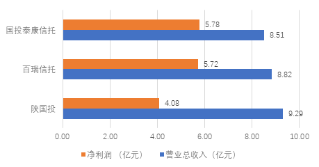 值得注意的是,与上年同期财务数据相比,陕国投和国投泰康信托均实现了两位数的增长。陕国投营业总收入、净利润分别同比增长11.72%、17.30%,国投泰康信托营业总收入、净利润分别同比增长22.80%、29.31%。