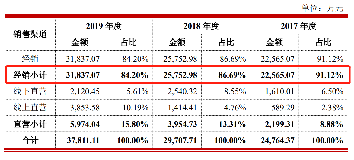 普洱澜沧主营业务收入中经销模式实现收入分别为22565.07万元、25752.98万元、31837.07万元,占比分别为91.12%、86.69%、84.2%。普洱澜沧经销商分布以华南和华东地区为主,近年来以华北地区为主的北方市场亦呈现持续发展的态势,而西南、西北地区的发展则保持相对稳定。截至2019年年末,该公司在约经销商数量为649家,覆盖全国31个省级行政区域。