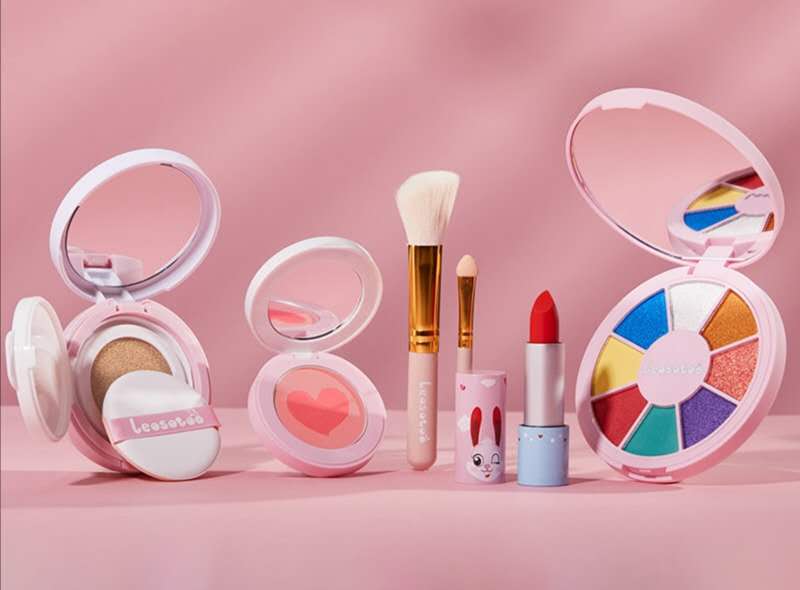 就这样,她创立了儿童彩妆线上品牌莱索兔,2019年9月正式面世。口红、眼影、气垫CC霜、腮红、卸妆湿巾、指甲油等大人们化妆桌上有的品类都有。