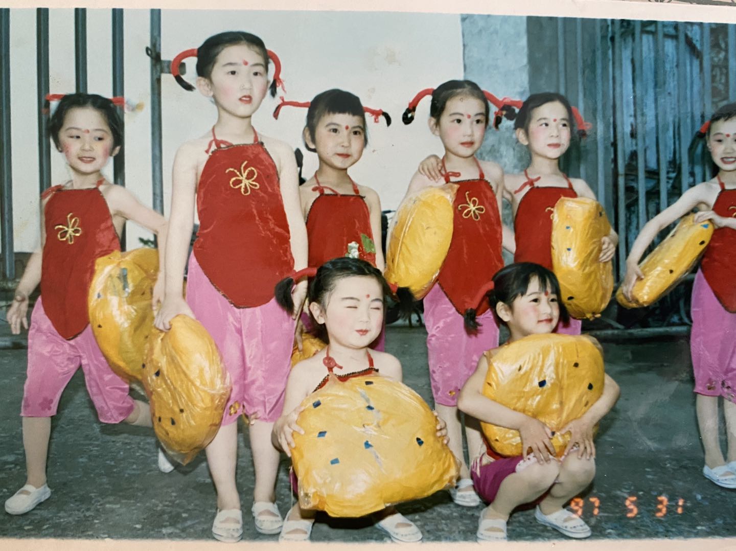 每个80、90后的家中都珍藏着一张小时候的演出照片,不管什么造型,眉心一定有颗全国统一的小红点。有些是老师用口红画的,有些是现成的红点贴纸。正是这个极简风单品,写下了“中国孩子化妆史”的第一页。