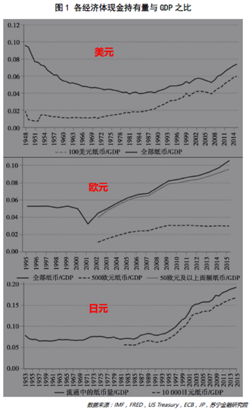 其他各国同样如此。2014年澳大利亚、德国、法国等七国中央银行联合调查显示,消费者对现金的需求并不能解释现存的现金供应量(见表1)。