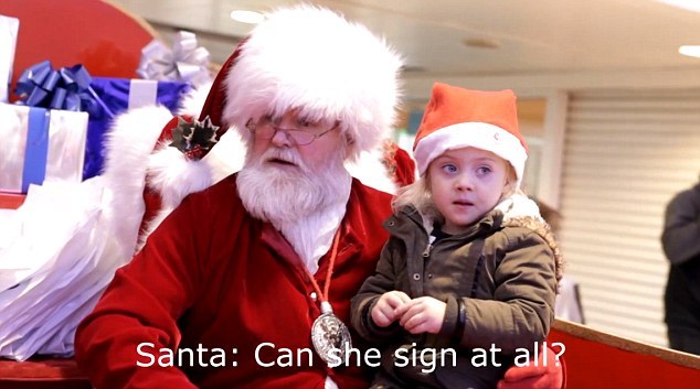 小女孩完全没想到,眼前的圣诞老人竟然会用手语。