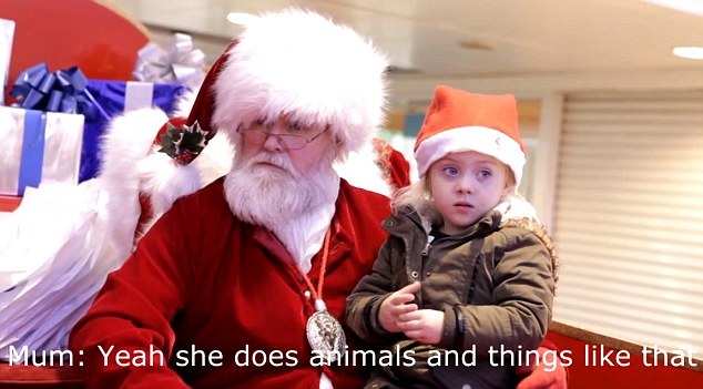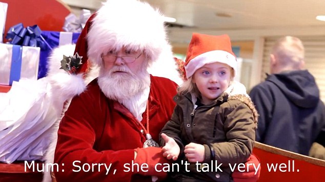 “她不太能说话。”女孩的妈妈在一旁对圣诞老人说。