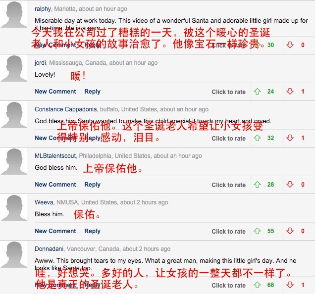 “好暖心。多么暖的圣诞老人,多可爱的女孩!”网友评论道。