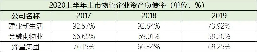 从已上市的3家物业管理公司来看,其中金融街物业及烨星集团近三年的资产负债率均未到80%红线。