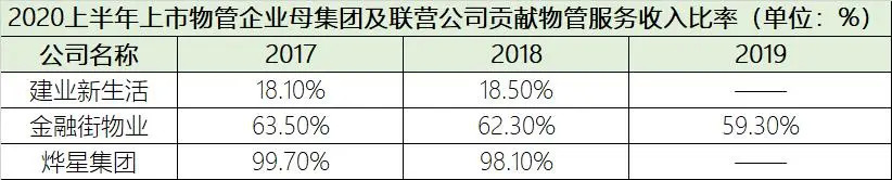 拿已上市的3家公司为例,烨星集团母集团在2017及2018年的收入占比超98%。建业新生活对母公司的依赖程度最小,2017及2018年其收入占比分别为18.1%及18.5%。