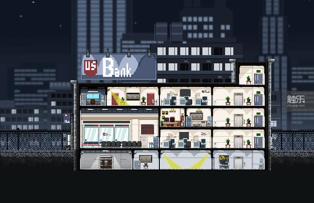 触乐也拿到了这个关卡的试玩Demo,关卡中随行的三个强盗要通过多次QTE操作打开防盗门,然后利用房间里的线索解开密码箱和保险柜,偷取尽可能多得盗取银行里的钱。房间里会有保安和摄像头,玩家可以通过电梯等掩体避开耳目实现潜入操作。此外,留给玩家偷窃的时间是有限的,一旦超时就会有警车来罪犯带走。