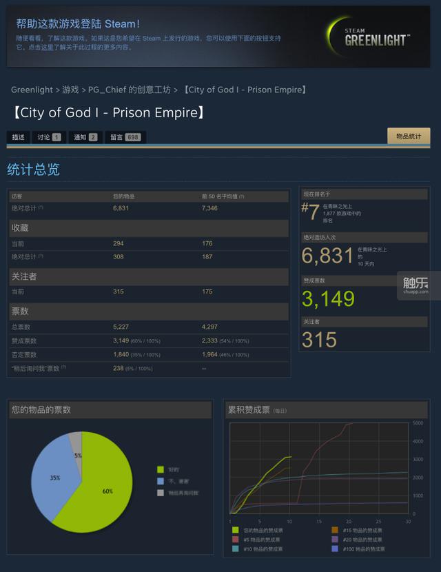最终团队还都挺过来了,游戏顺利进入研发阶段2个多月后,张珽把《上帝之城:监狱帝国》提交到了Steam青睐之光社区。就在提交Steam的前一天,他还给员工打预防针,让他们心态稳定,不要受到喷子的影响。