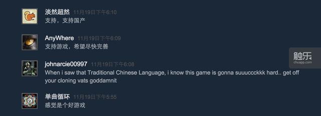 在所有Steam玩家的评论中,让张珽最触动是这样一条评论:“当我看到支持中文的时候,我就知道这是一款垃圾游戏,他妈肯定又是山寨哪个游戏的!”张珽说当时他有些气愤,这似乎在说国人一定就做不出好的原创游戏一样,就冲这句话,他也要好好把作品完成。