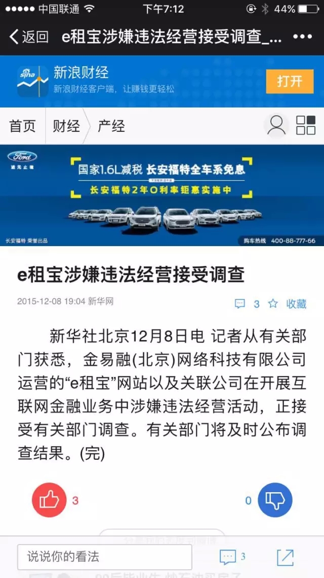 12月8日晚间,新华社刊文证实互联网金融企业e租宝因涉嫌违法经营遭到调查,随后e租宝宣布全面暂停业务,网站、APP均无法登陆。