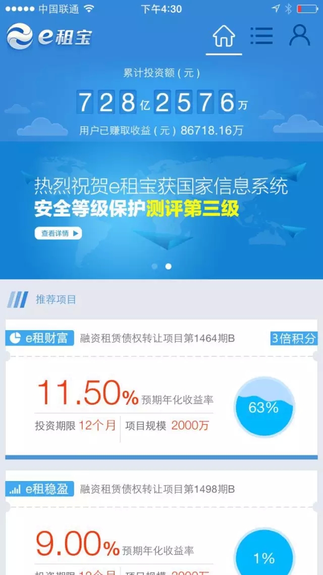 e租宝成立于2014年7月,是安徽钰诚集团全资子公司,注册资本金1亿元,e租宝的主要业务是融资租赁债权交易,其融资租赁业务的合作伙伴同为钰诚集团旗下另一公司——钰诚融资租赁公司,因为信息披露的模糊,e租宝模式一直被业内质疑存在资金池和涉嫌自融。据e租宝官方数据显示,e租宝融资额已达到了728亿2576万元,增长速度业内第一。