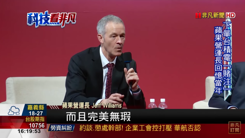 ▲2017年,Jeff Williams在台积电成立30周年庆上称赞A8芯片“完美无瑕”