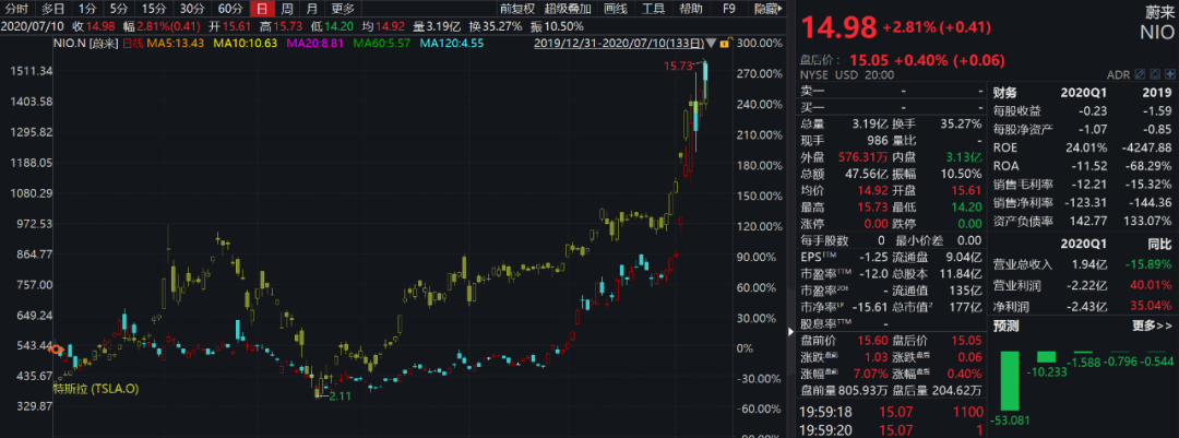 2019年12月31日美股收盘至7月10日美股收盘,特斯拉股价涨幅达269.24%,蔚来涨幅更高达272.6%。马斯克凭借特斯拉股价上涨于7月10日收盘后身家超过股神巴菲特,在全球富豪榜上位列第七。