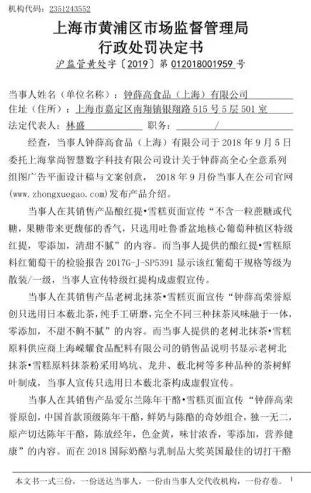 2019年上海黄埔区的一个处罚让钟薛高现出原形。钟薛高在被罗永浩直播带货后,被扒曾经因为虚假宣传受到过上海市黄浦区行政处罚,其宣传的原材料均非所宣传的等级。
