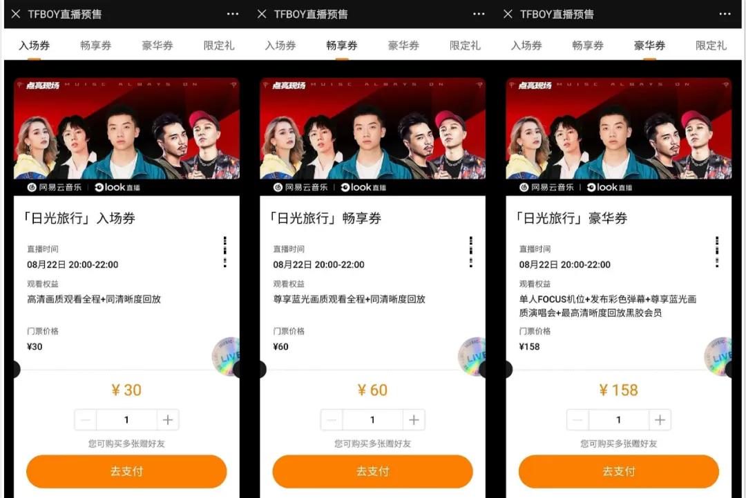 起因是即将于8月22日举办的TFBOYS七周年线上演唱会被传在开启了直播预售,但在这份预售中,粉丝们发现,这场线上演唱会竟然按视频画质设置了不同等级的观看渠道,并明码标价。