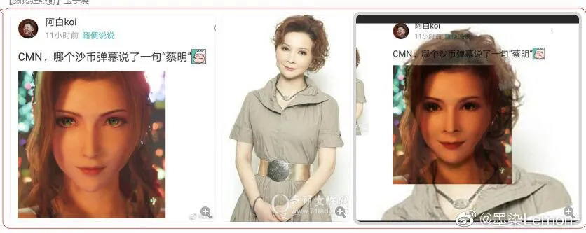 另一方面,蔡明与小林幸子一样,在正式进军二次元市场之前,就已经在圈内拥有了包括“毒舌女王”、“底特律:成为蔡明”、“撞脸FF7爱丽丝”等不少有趣的梗。